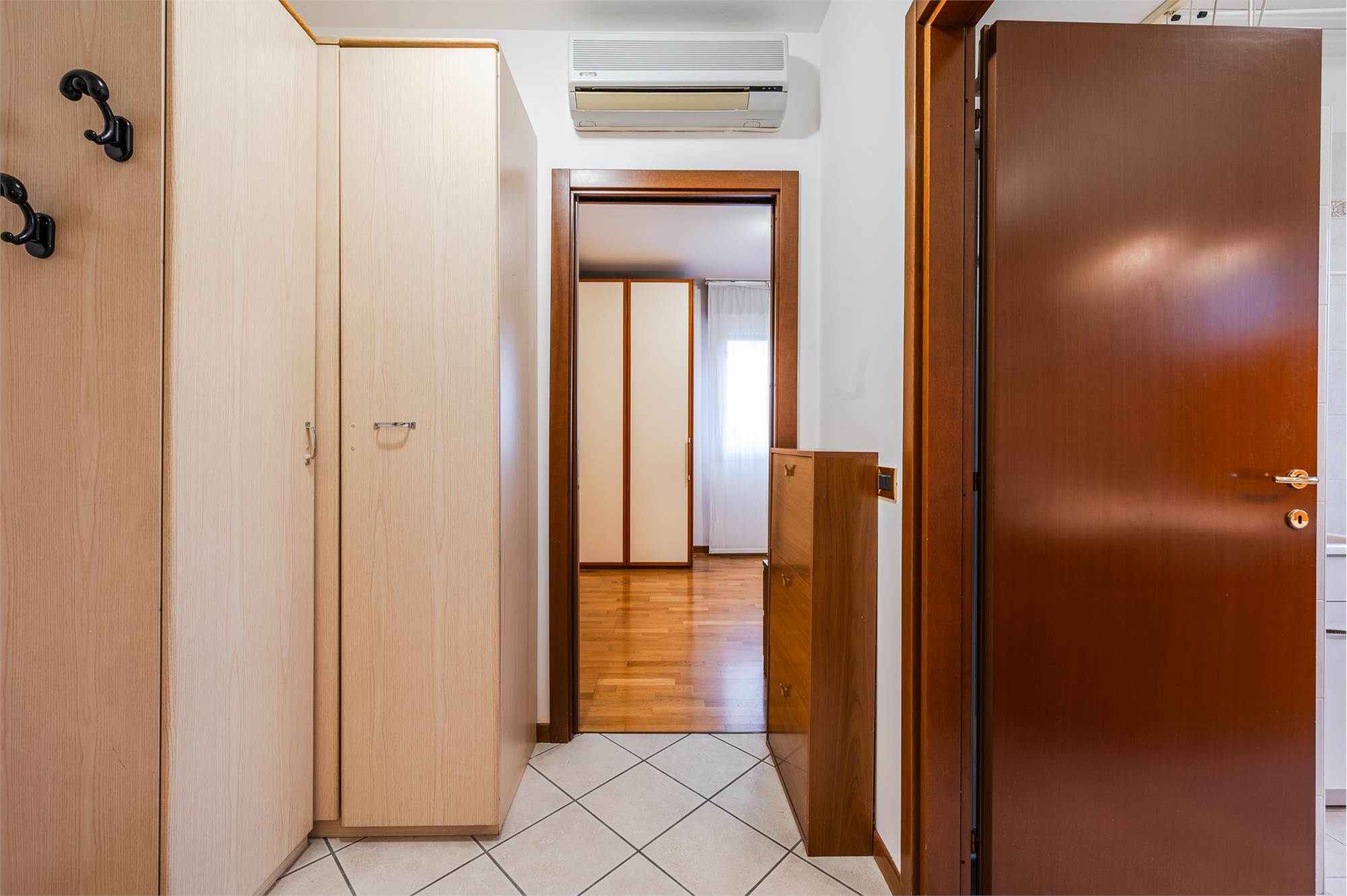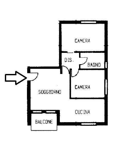 L’immobile si apre su un ampio soggiorno luminoso con affaccio diretto sul balcone, ideale come zona living e relax. La cucina è separata, funzionale e ben organizzata. Un disimpegno notte conduce alla zona più riservata della casa, dove si trovano due camere da letto di buone dimensioni e il bagno, comodo e ben distribuito.