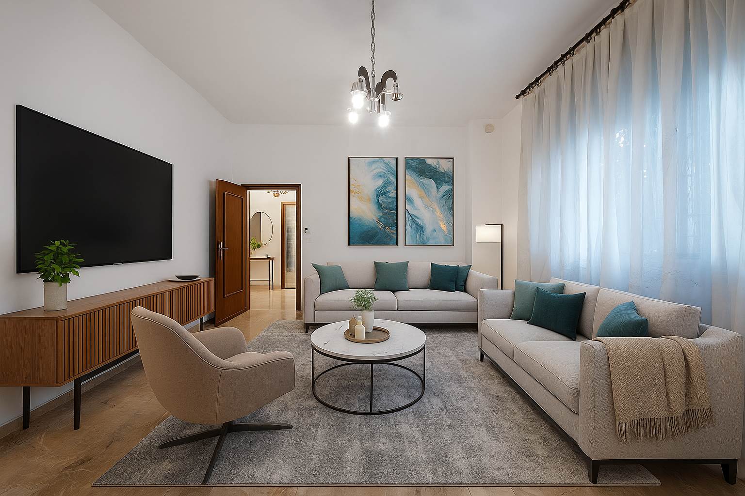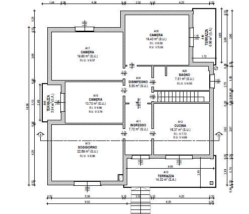 Al piano rialzato si trova l’appartamento principale, caratterizzato da ambienti ampi e luminosi: un accogliente soggiorno, una cucina abitabile, tre camere da letto e un bagno. Questo livello è arricchito da due balconi e da un grande terrazzo ideale per rilassarsi all’aperto, godendo della pace e della privacy che la proprietà offre.