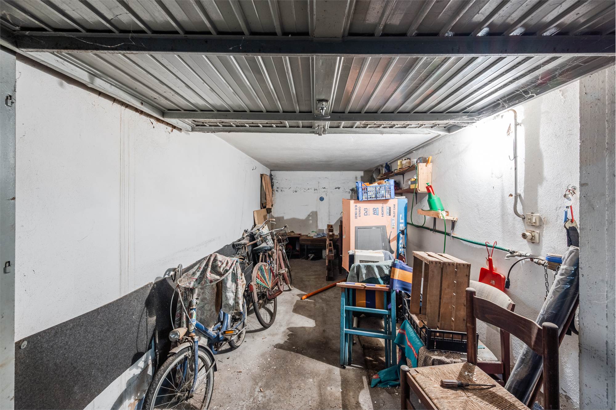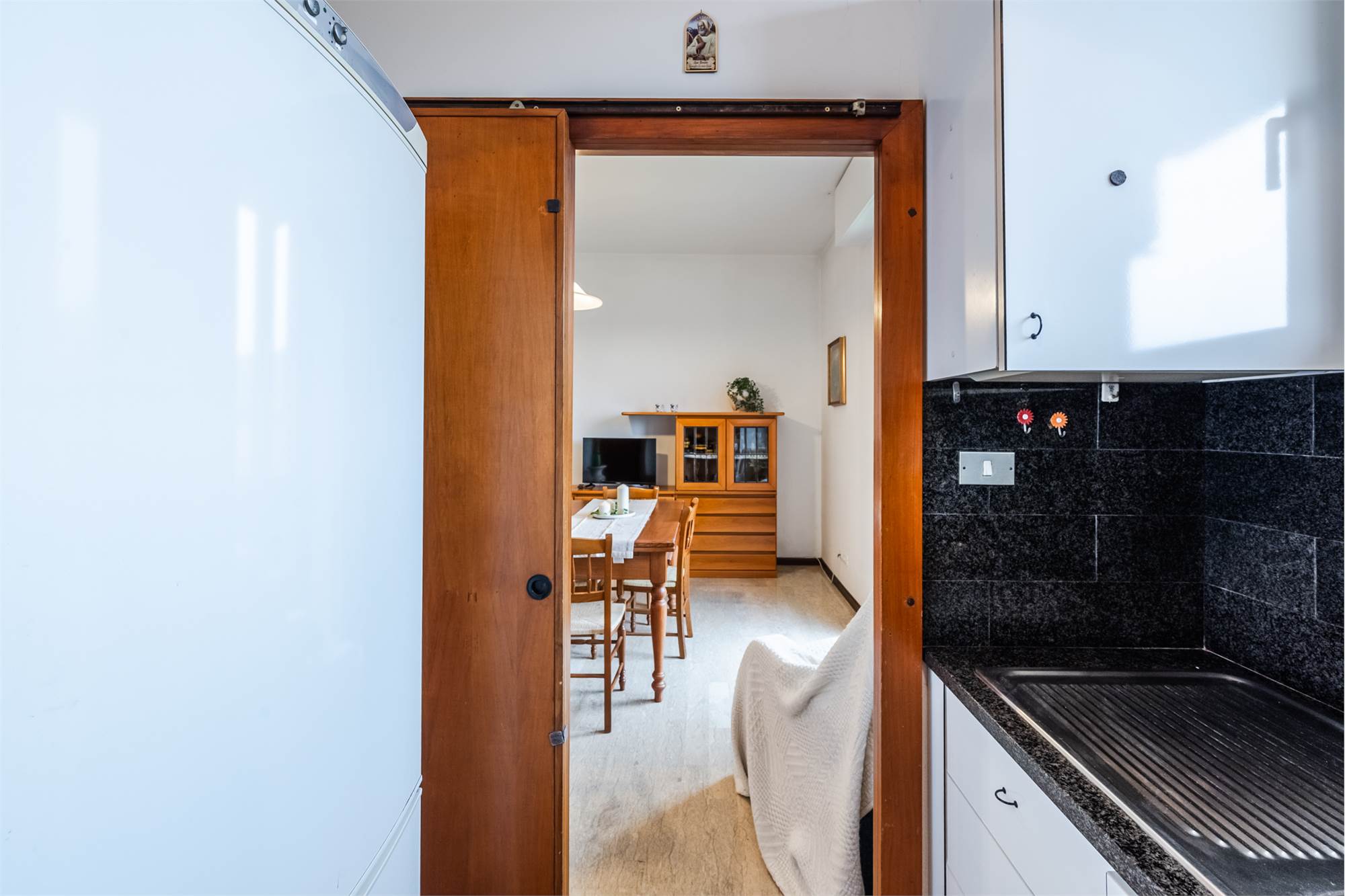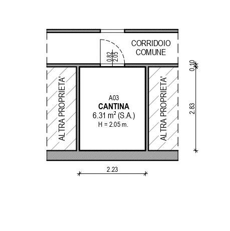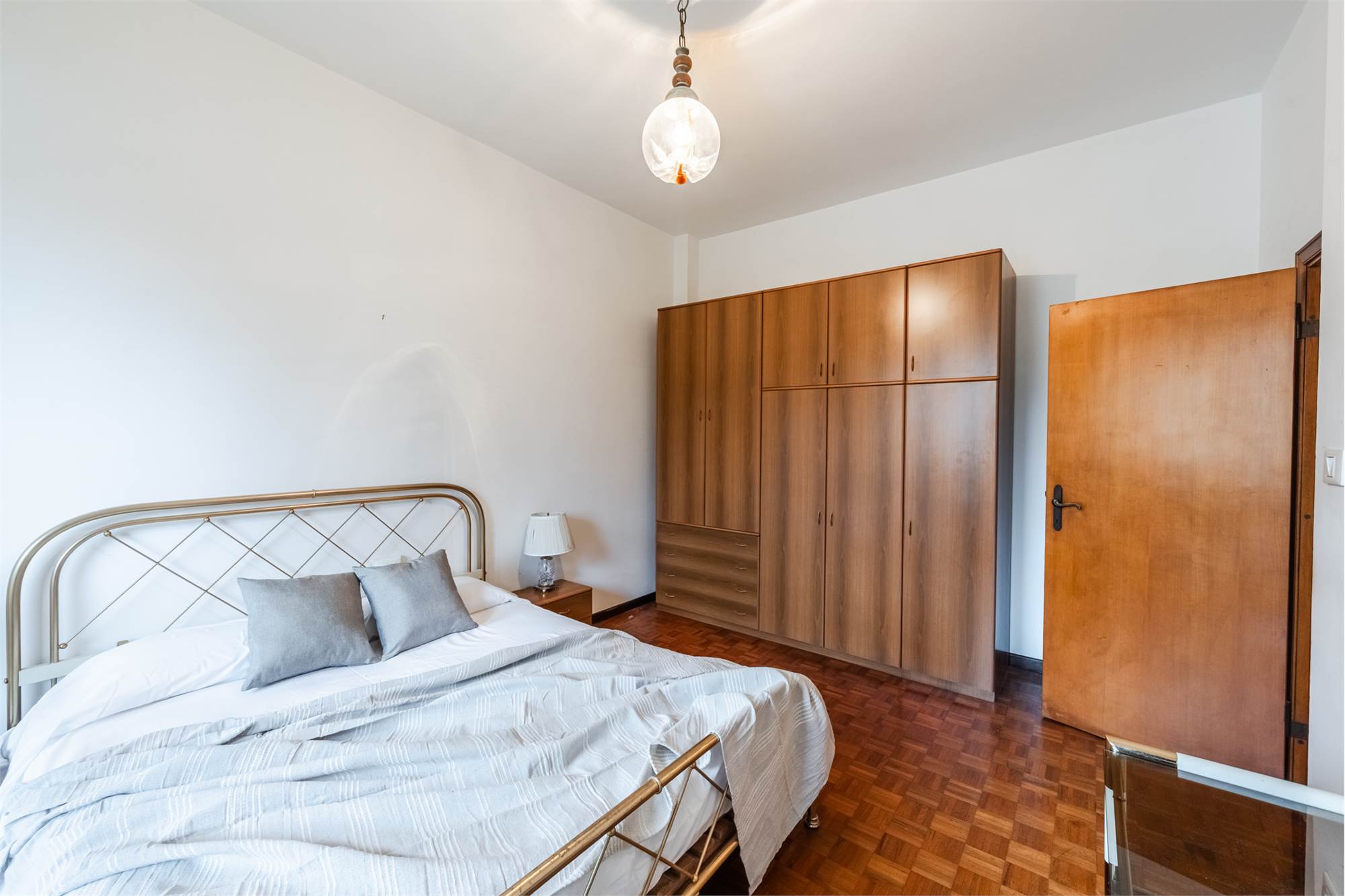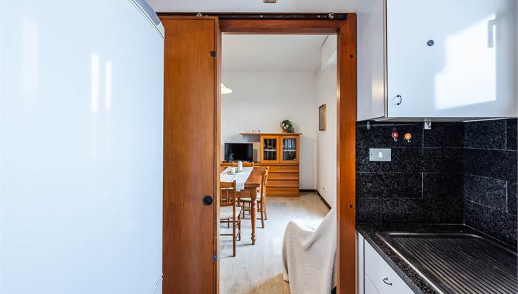 L’abitazione si compone di ingresso, soggiorno, cucinotto, due camere da letto, bagno e due balconi, offrendo ambienti ben distribuiti e luminosi. Completano la proprietà un garage e due cantine.