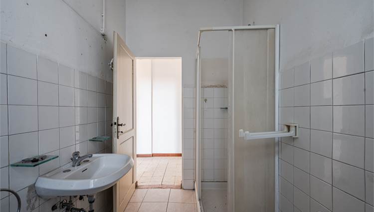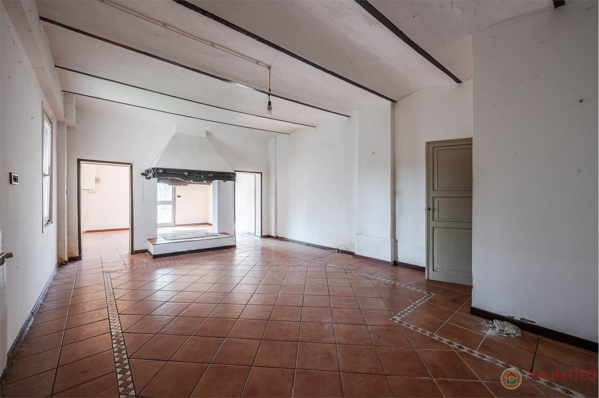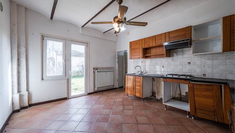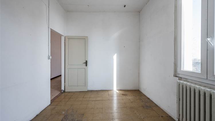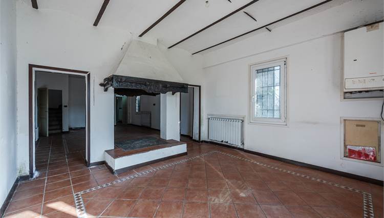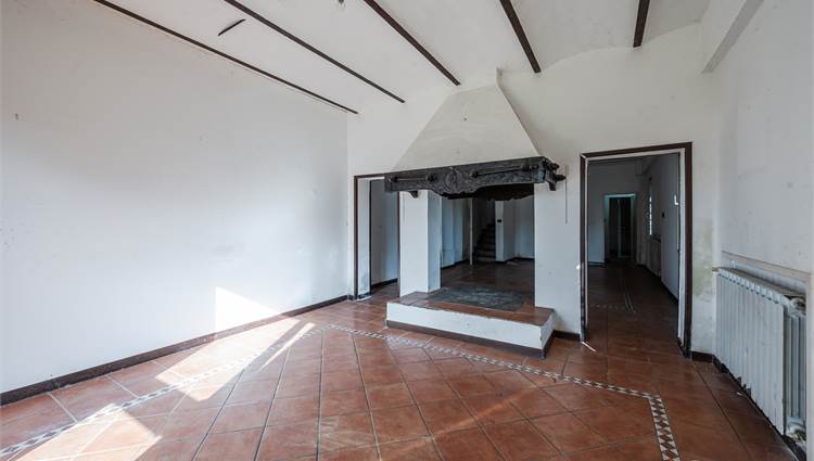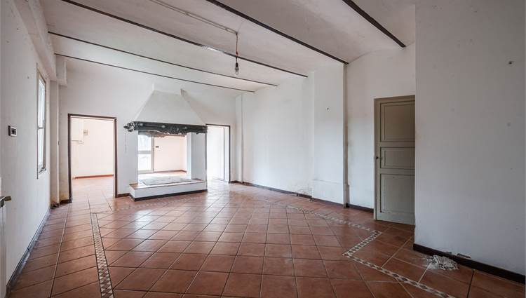 Il fabbricato principale, è suddiviso in due corpi distinti: la porzione abitativa e una stalla con magazzino. L’abitazione, caratterizzata da una metratura generosa di circa 225 mq, si sviluppa su due livelli ed è così suddivisa: al piano terra ingresso, soggiorno doppio, cucina abitabile, ripostiglio, cantina; al primo piano tre camere da letto e un bagno.