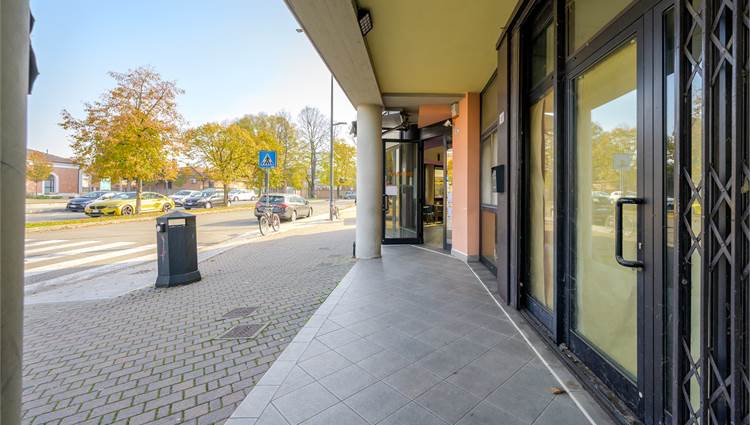 L’immobile presenta una vetrina fronte strada affacciata sul portico comune e dispone di una distribuzione interna razionale, composta da più ambienti che si prestano a diverse tipologie di attività.
